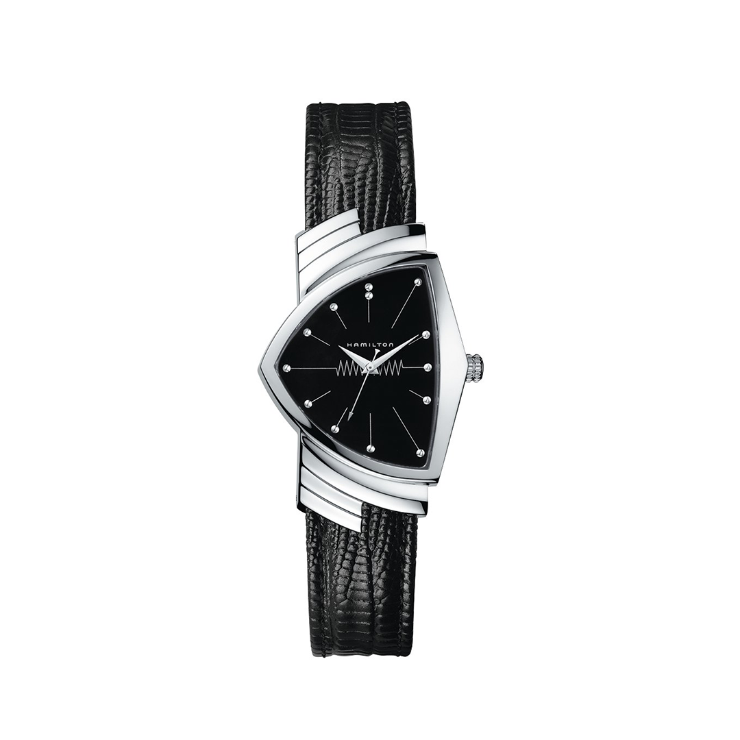 Il Ventura originale, presentato nel 1957, passò alla storia dell’orologeria come il primo orologio elettrico a batteria al mondo. Con il suo design unico e audace, divenne rapidamente un’icona e un oggetto da collezione. L’ultima interpretazione del Ventura è un fedele tributo all’originale e richiama la pionieristica forma a scudo della cassa, esempio di design moderno “Mid-Century”.
